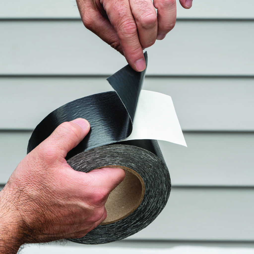 This self-adhesive butyl tape creates a waterproof barrier that helps prevent moisture damage in deck framing.