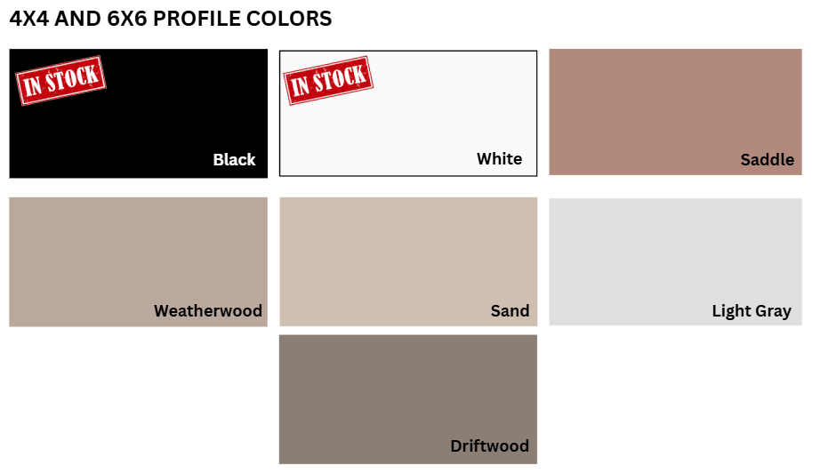Posts: 4×4 (woodgrain finish) and 6×6 (smooth)